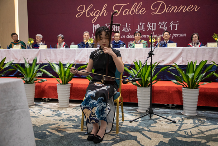 Second-year Marketing Management student, Cao Wenjin, and third-year Accounting student, Fu Qike, played the erhu and piano at the High Table dinner.