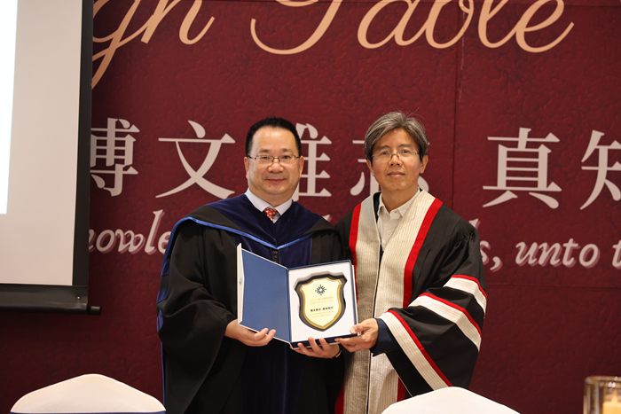 Prof Huang Huaxiong presents a souvenir to Dr Yan Jun