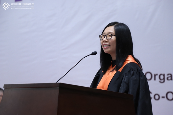 创雅苑舍监阮宾皓博士在讲话中分享了她在苑舍工作时的日常,强调在苑舍工作中要着力培养学生良好的沟通技巧和相互尊重的态度,这不仅有利于学生们处理宿舍关系,也有助于他们提升社交能力,增进家庭关系。